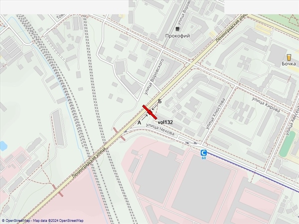 Ленинградская ул., д.1 по ул.Чехова, съезд с моста, справа при движении в центр