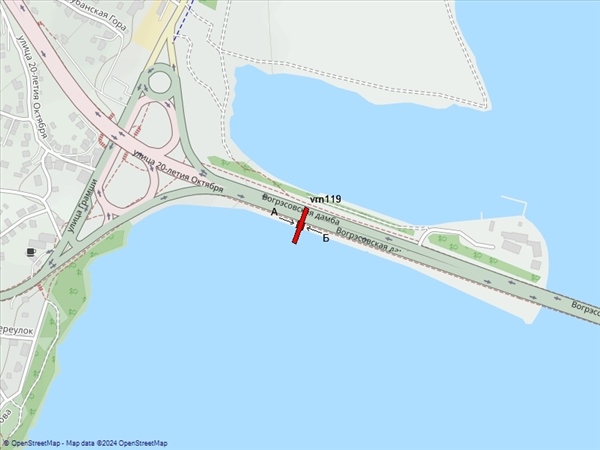Дамба ВОГРЭС, заезд на мост, справа при движении из центра