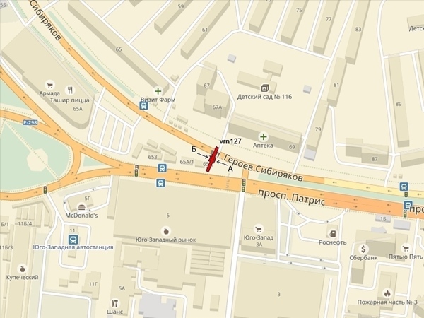 Героев Сибиряков ул., в районе ТЦ "Армада" и Юго-Западного рынка