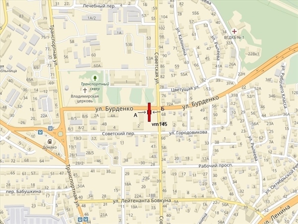 Бурденко ул., перед пересечением с ул. Советская, справа при движении в сторону Северного моста