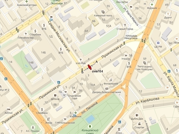 Пушкинская ул., 3, пересечение с Средне-Московской ул., слева при движении в центр