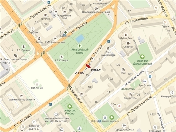 Ленина пл., 15, 100м от Плехановской ул., при движении к ул. Кардашова