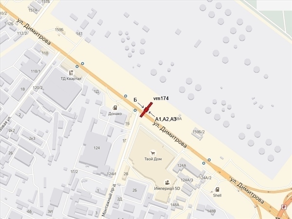 Димитрова ул., пересечение с пер.Монтажный, напротив д.2, ТЦ "Твой дом", справа при движении к Ленинскому пр-ту