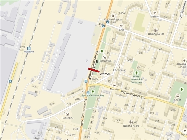 Волгоградская ул., за пересечением с ул.Баррикадная, в районе рынка "Грузовой Двор", справа при движении к ул.Димитрова