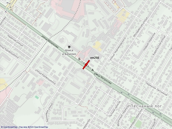 Матросова ул., 62, в районе ТД "Гермес", справа при движении к ул. Ворошилова