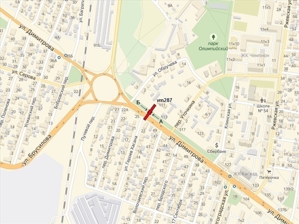 Димитрова ул., 113, 100м до поворота на ул.Брусилова, справа при движении к Ленинскому пр-ту