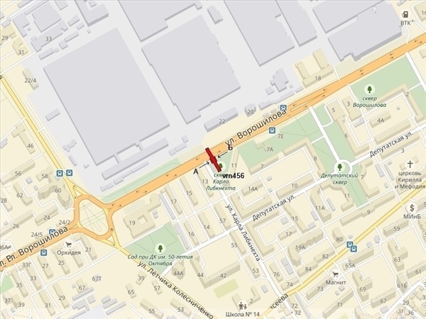 Ворошилова ул., 11, пересечение с ул.К.Либкнехта, справа при движении в центр, к ТЦ "Европа" и цирку