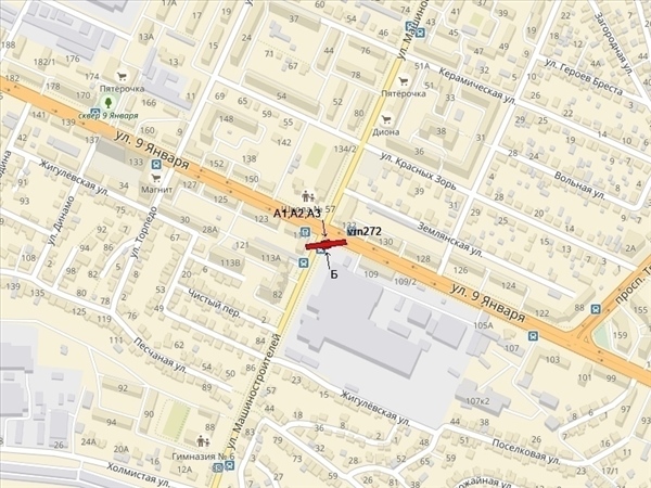 9 Января ул., пересечение с ул. Машиностроителей, у "Пивзавода", справа при движении в центр