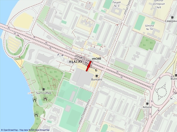 Остужева ул., в районе пересечения с ул.Переверткина, д.7, у гипермаркета «Линия», справа при движении к Ленинискому пр-ту