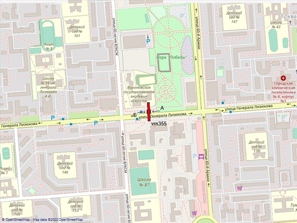 Генерала Лизюкова ул., 42В, в районе сквера, 200м до пересечения с ул.60-летия ВЛКСМ, справа при движении от Московского пр-та