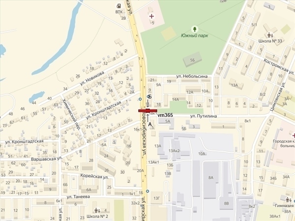 Новосибирская ул., 18, за пересечением с ул. Путилина, справа при движении к ул. Лебедева (ДК"Кирова" и ТЦ"Левый берег") и Вогрэсовскому мосту