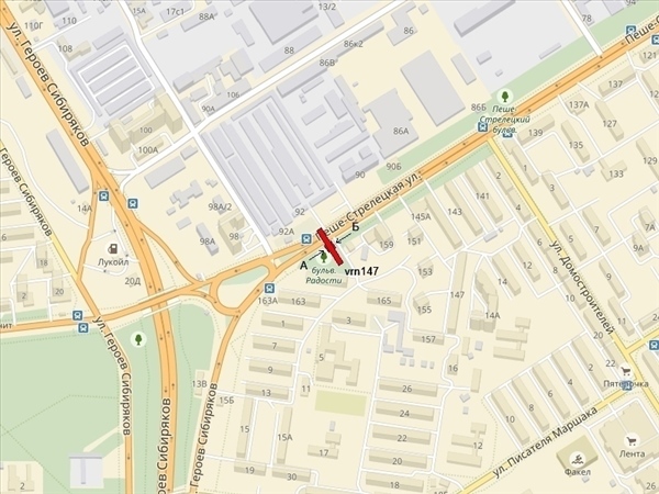 Пеше-Стрелецкая ул., д.159в, выезд с транспортной развязки с ул.Героев Сибиряков, справа при движении в центр, к ТЦ "Космос", к салону мебели "Шатура"