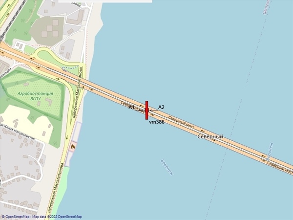 Северный мост, опора 16, сторона А1 - при движении из центра к ул. Остужева, гипермаркету "Линия", А2 - в центр
