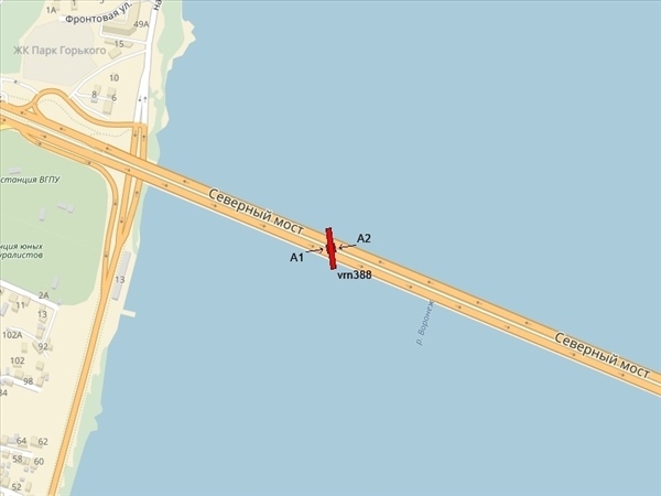 Северный мост, опора 20, сторона А1 - при движении из центра к ул. Остужева, гипермаркету "Линия", А2 - в центр
