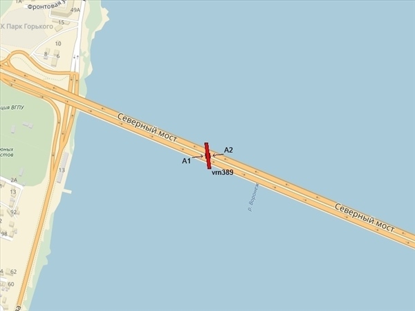 Северный мост, опора 22, сторона А1 - при движении из центра к ул. Остужева, гипермаркету "Линия", А2 - в центр