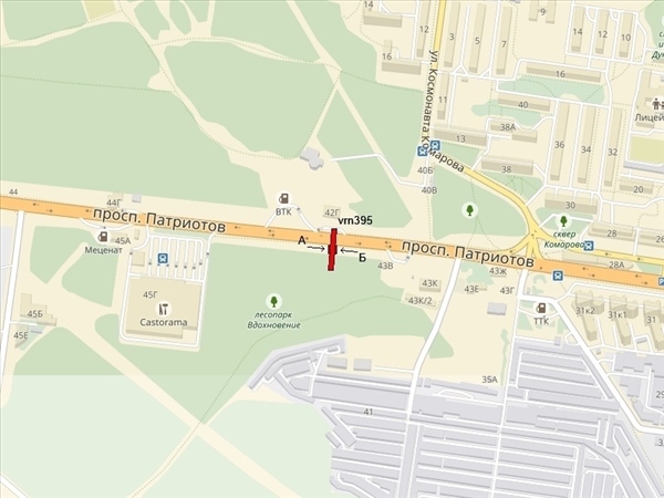 Патриотов пр-т, напротив д.42Г, кафе "Шишка", справа при движении в город, Курское направление (сторона Б - из города, 200м до ТЦ "Касторама")