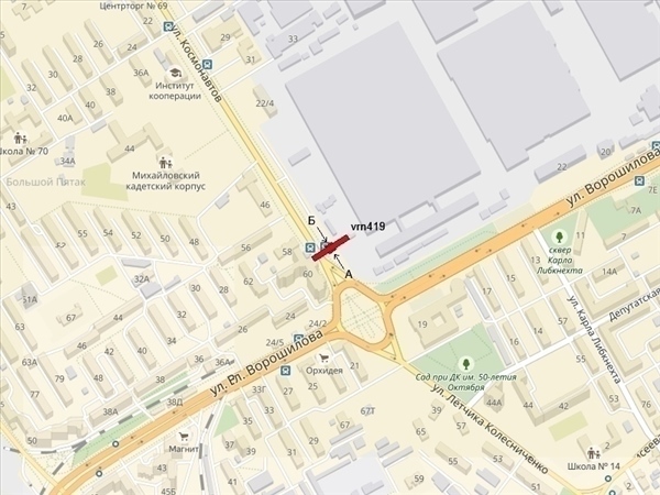 Космонавтов ул., напротив д.60, пересечение с ул. Ворошилова, у ост."Ул.Космонавтов", справа при движении к Пеше-Стрелецкой ул.