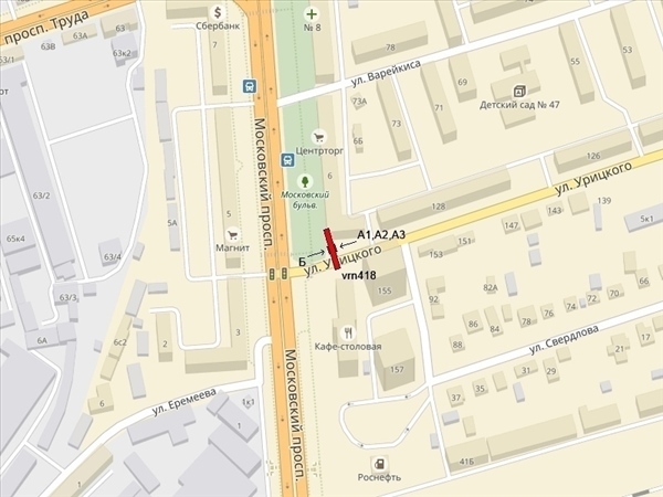 Урицкого ул., 30м до пересечения с Московским пр-том, справа при движении от пер.Свердлова