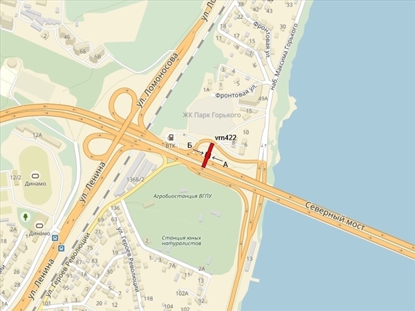 Съезд с Северного моста, перед поворотом на набережную Массалитинова, 80м до АЗС "ВТК", справа при движении с левого берега в центр