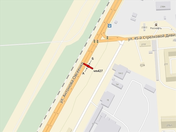 Антонова-Овсеенко ул, 7и/2, 80м до поворота на ул.45-й Стрелковой Дивизии, справа при движении к Северному авторынку и Московскому пр-ту