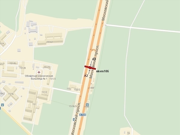 Московский пр-т, в районе ОКБ №1, разделительная полоса (сторона А1 - въезд в город, при движении к ТРЦ "Московский пр-т"("Лента"), сторона А2 - выезд из города, при движении к ТРЦ "ГРАД"("АШАН", "Лемана Про"), трасса А134, 2км+847м