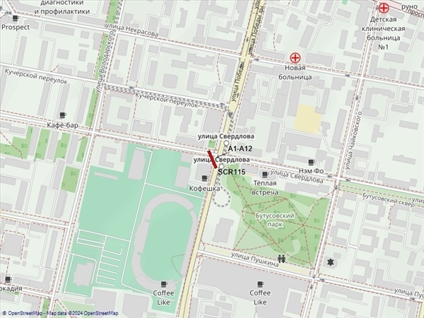 Победы ул., 38/27, ТЦ "Бутусовский", в районе пересечения с ул. Свердлова, 200м до ТРЦ"АУРА", справа при движении к ул. Свободы