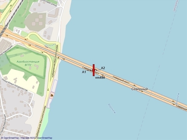 Северный мост, опора 14, сторона А1 - при движении из центра к ул. Остужева, гипермаркету "Линия", А2 - в центр