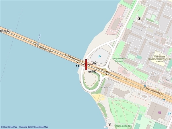 Северный мост, опора 42, сторона А1 - при движении из центра к ул. Остужева, гипермаркету "Линия", А2 - в центр