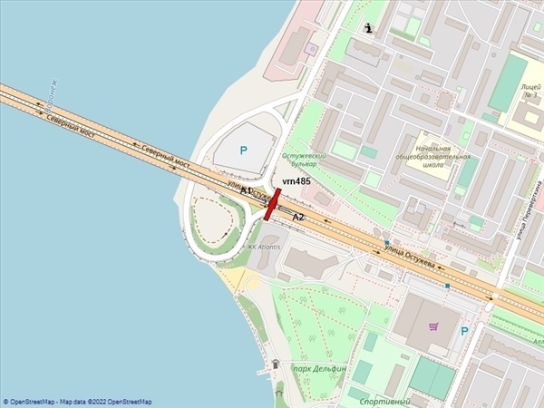 Северный мост, опора 50, сторона А1 - при движении из центра к ул. Остужева, гипермаркету "Линия", А2 - в центр