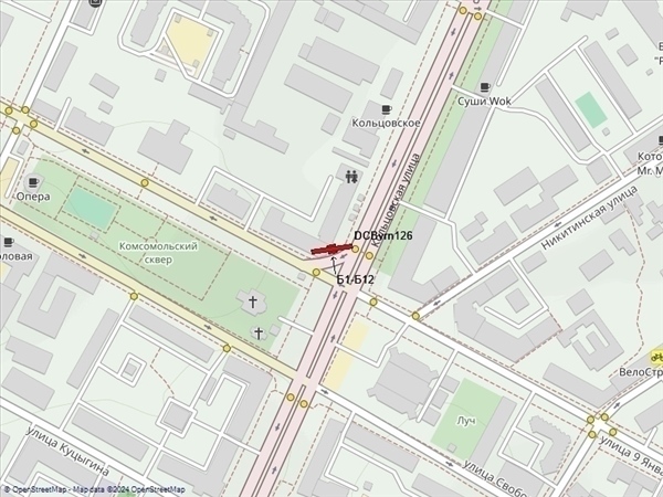 Кольцовская ул., поворот на ул. 9 Января, справа при движении из центра